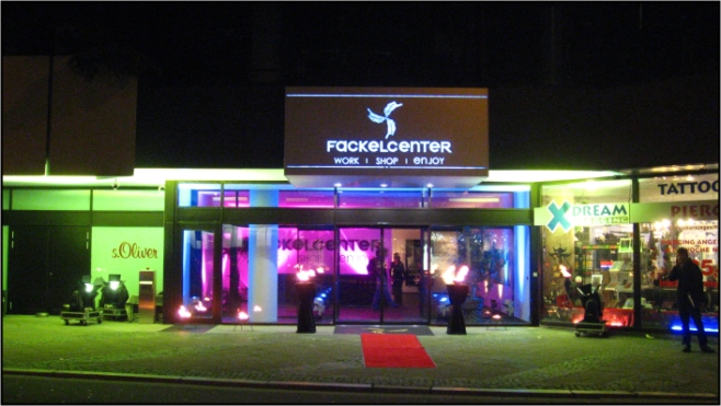 Eingangsbereich an der Eröffnung. Auch die Lichtgestaltung und den Event selbst haben wir geplant.