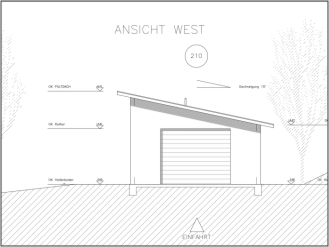 Errichtung einer Lagerhalle in Mettweiler. Fassade Holzrautenschalung, Photovoltaikanlage Lagerfläche 190 m².